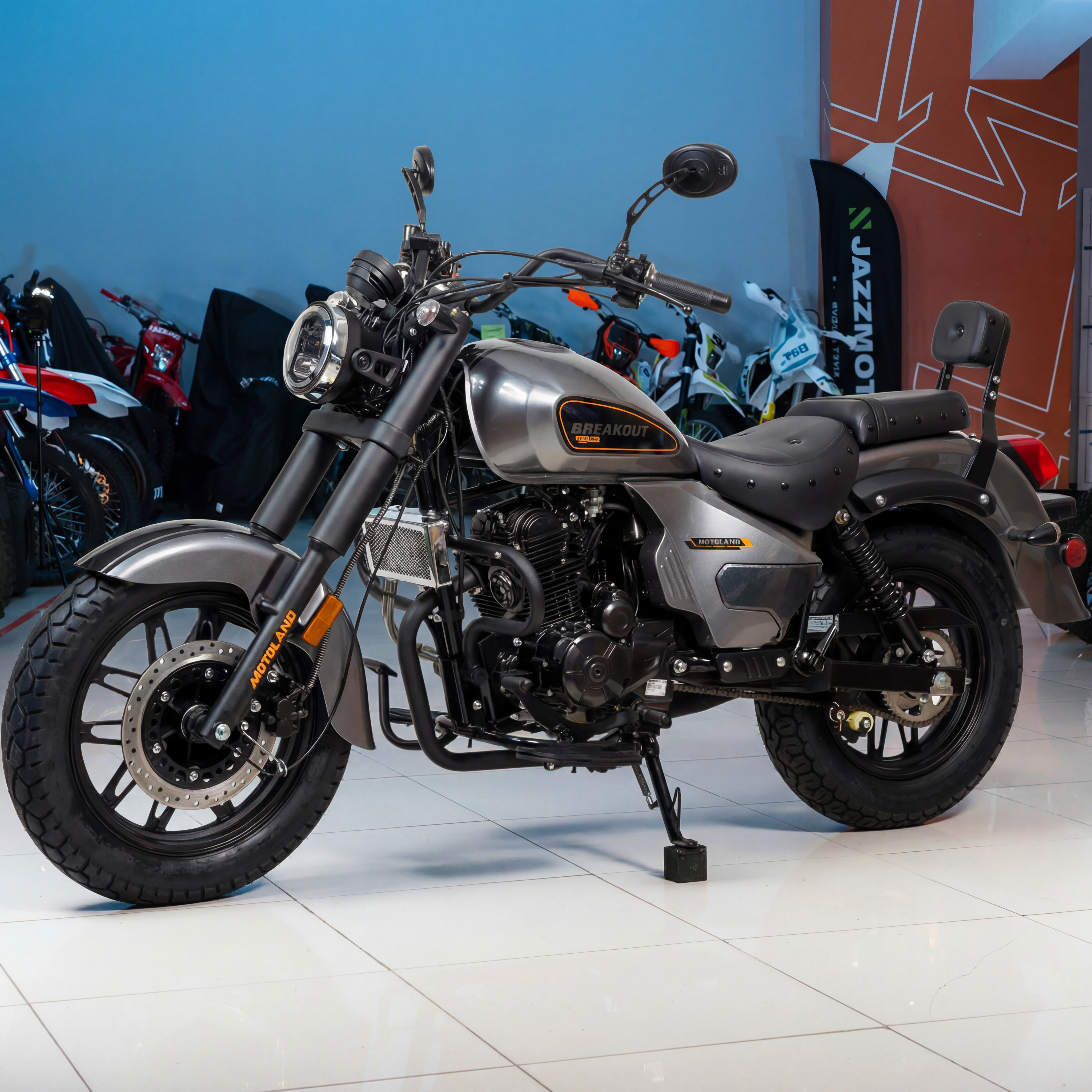 Motoland BREAKOUT 300 — это удачное сочетание современного дизайна, комфортной посадки, надежной конструкции и актуального оснащения. Эта модель подойдет тем, кто ищет дорожный мотоцикл в стиле чоппера/круизера для города и трассы, с удобной эксплуатацией, дисковыми тормозами, электронная панелью и возможностью официальной постановки на учет.